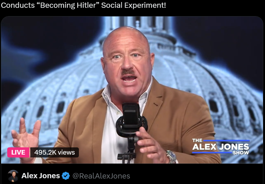 – Alex Jones does the Hitler mustache challenge.