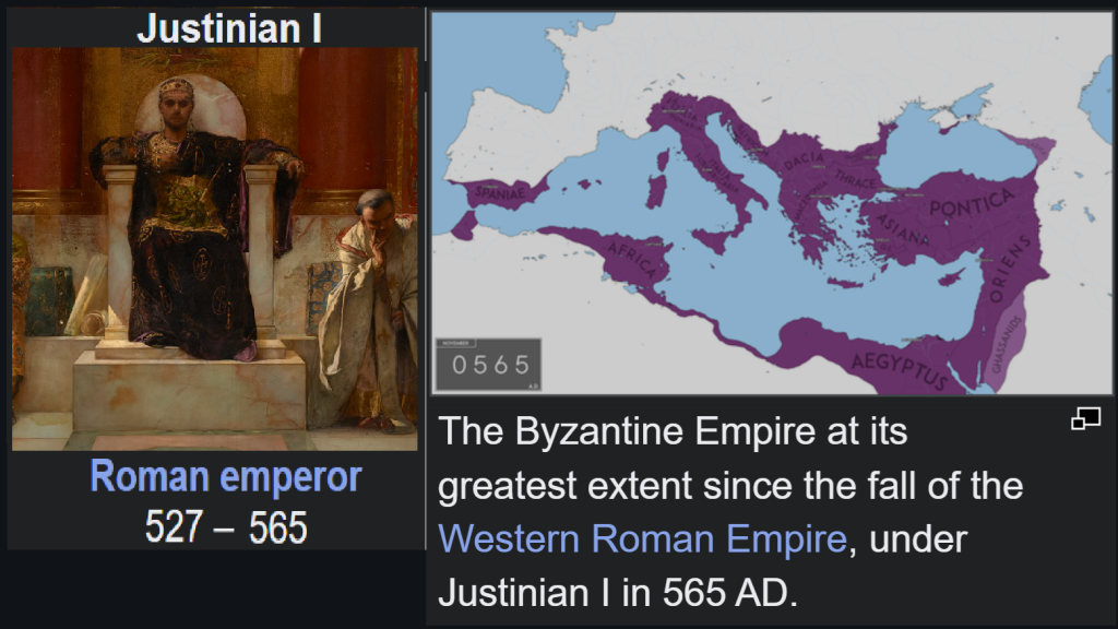 Emperor Justinian had one famous event happen, the Nika Riots, which seriously weakened his power, which otherwise might have been enough to restore the entirety of the Augustus’ complete empire. In my opinion, this Nika Riot forever after remained a threat to the emperor and was the foundational weakness responsible for the disintegration of the united empire immediately after Justinian, and also responsible for the relatively lame duck existence of the remaining empire until it’s complete collapse. Because after this riot, the people now had this notorious Nika chant which could at any time motivate and unify them to anti-emperor violence if ever they had an irrational cranky baby schizophrenic multiple-personality-disorder moment, which mass mobs of people are known to have regularly; and which is the entire reason power concentrated in the rational mind of a single person at the wheel of Emperor is needed. As a result, Justinian himself, and all future emperors after him I imagine, had to tread lightly around their people. And without power among his own people, what power could he have against foreign enemies?