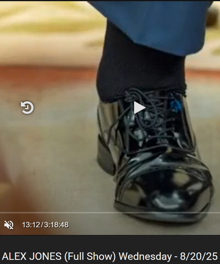 he shows of what seems to me to be a very healthy looking ankle, or maybe you could argue slightly swollen, or really I might even use a picture like this to cite the health of his ankles looking fine. But really you can not tell anything for sure behind a sock. Yet Jones goes on to cite this picture as the most clear as day evidence of EXTREME LARGE CRAZY ANKLES! Again, Jones is too smart for this to be authentic, so it remains to wonder what propaganda maneuver he is trying with this.